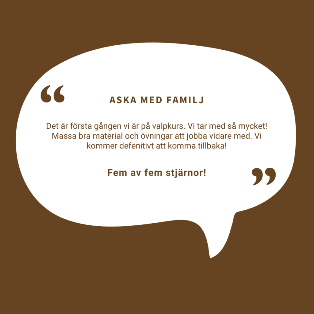 Det är viktigt att gå en valpkurs med den nya familjemedlemmen. Valpkursen är en investering i framtiden. Du får under valpkursen en massa verktyg som gör inlärningen av vardagslydnaden lätt och strukturerad. Du får även en större förståelse för din hund och varför din hund gör som den gör. Din valp/unghund får den allra viktigaste erfarenheten av dem alla – social kompetens! Den lär sig att samspela med både andra hundar och främmande människor. Valpkursen utgår från Bäst var-dag konceptet som Maria Brandel och Siv Svendsen tagit fram.